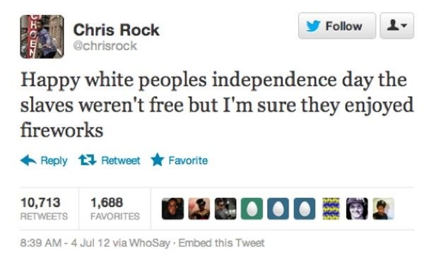 Chris Rock seems to have tweeted up a bit of controversy over the July 4th holiday.