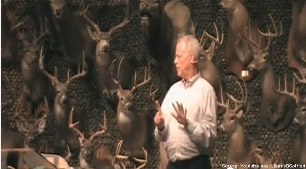 Speaking in front of a wall of glassy-eyed dead deer to an audience of glassy-eyed Christians at last month's 2012 Sportsman's Banquet at Hartwell, GA's Liberty Baptist Church, serial Obama-speech-boycotter Rep. Paul Broun (R-JesusJesusJesusland) single-handedly disproved evolution and the Big Bang , and embryology, for good measure, revealing that they are "lies straight from the pit of Hell."