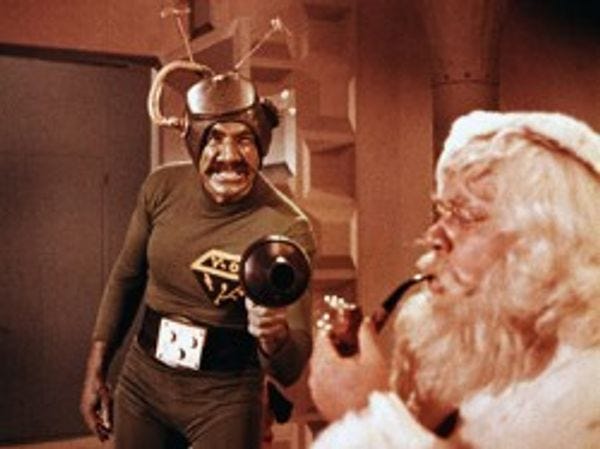Santa needed a replacement? On Mars? This is starting to sound like, I dunno, maybe one of those demented, so-bad-it's-good 1960's sci-fi flicks. Cult status cannot be far off.