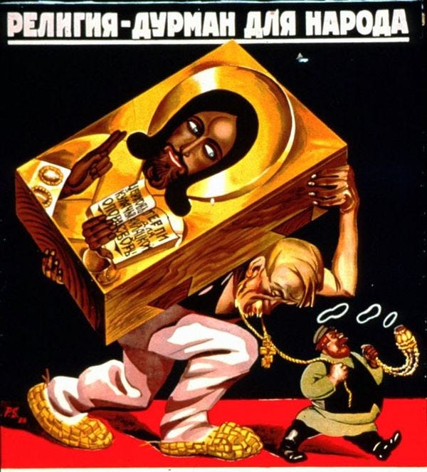 But even worse than his criminal thinking about economics is Marx's atheism, of course: