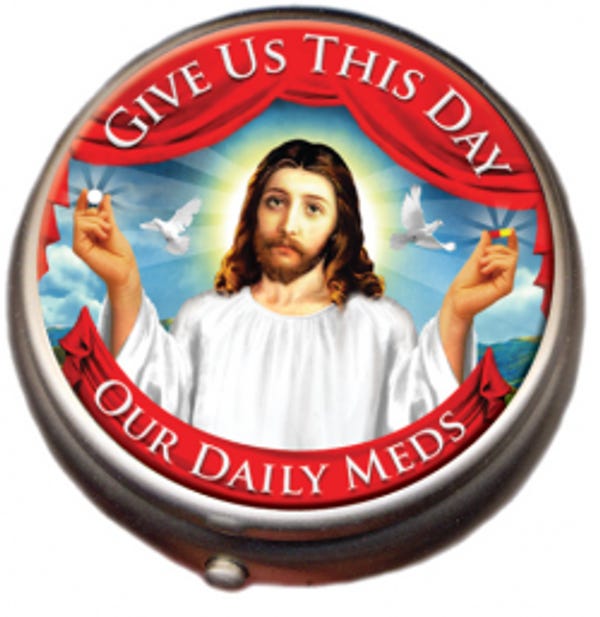 Also left up to the reader to puzzle out is whether it is acceptible for good Christians to avail themselves of psychiatric medications; are they supposed to just pray away their bipolar disorder, or would they be allowed to benefit from medications that were conceived in a wicked, positivist view of the brain, as long as they continue to see themselves as essentially sinful and depraved?
