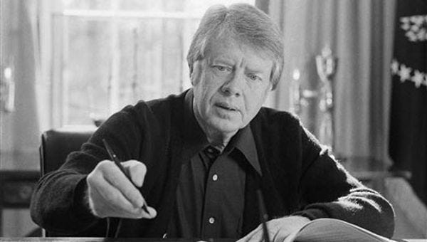 Hahaha, stupid Jimmy Carter, with his call for decriminalization and that embarrassing way he put solar panels on the White House roof like a common hippie. Thank God we had Ronald Reagan move in and take them down.