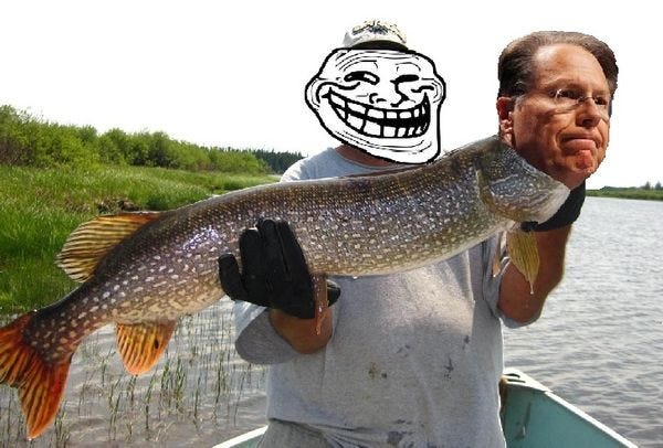 On the internet, this sort of comment is pretty much what you call "mild." However, Erik Loomis is not merely an academic; he is also a blogger at Lawyers, Guns & Money, and so he is someone whose comments get noticed in the Angersphere. The Daily Caller, for instance, said that Loomis "unleashed a flurry of profanity-ridden tweets demanding death for National Rifle Association executive Wayne LaPierre." Other wingnuts soon followed in accusing Loomis of making "death threats" against LaPierre, including a genius whose blog breathlessly announced Professor calls for assassination of NRA CEO.