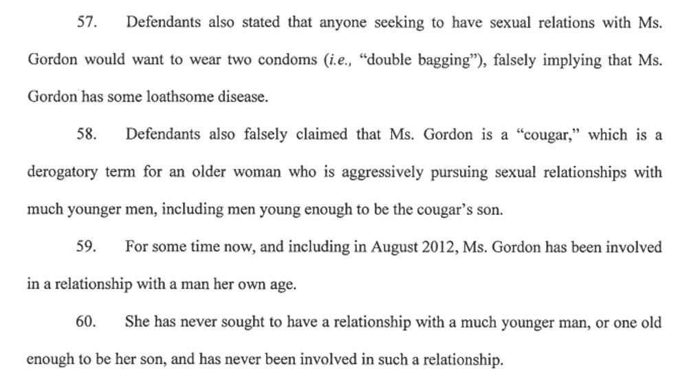 That's some sweet fuckin' snark. Perhaps Ms. Gordon's lawyers are interested in moonlighting for your Wonket, like half our bloggers, who are all "esquires" just like Orly Taitz!