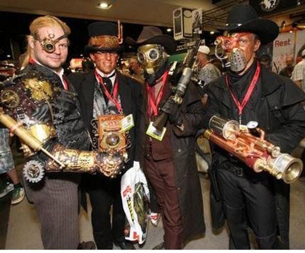 In the meantime, we hear that David Barton has been reading some steampunk. We have managed to obtain a photo illustration from Barton's upcoming work of history, They Died With Their Goggles On, in which he explains that mechanically-enhanced Christians tamed the frontier through both their steadfast faith in the God of the Bible, and their fierce determination to glue brass gears on every object in sight.