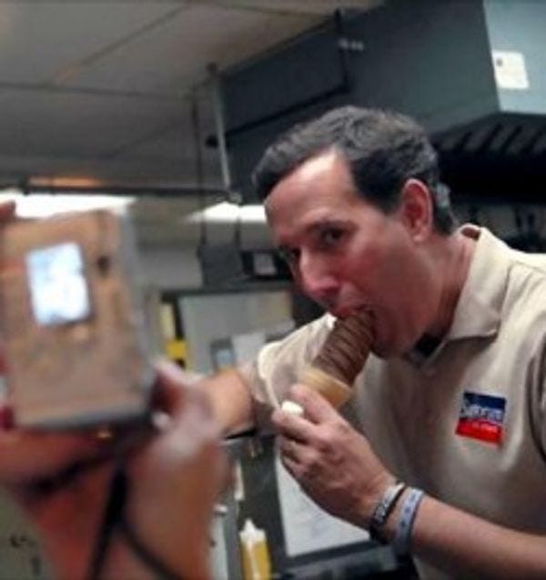 Discarded philosopher-statesman Rick Santorum’s latest column at World Net Daily is about Freedom and the taking of it by Barack Obama. Naturally, it’s a veritable Journey concert of brain-dead paleo-conservative greatest hits: We are Free Americans because our values are having guns, being hetero-sexing Christians, drowning Obamacare in the sink, and Taxed Enough Already! Yes, all of this stopped being terribly funny a while ago, but here’s the thing: Rick Santorum’s rote regurgitations distill a certain dangerous strain of American political “thought” that remains influential. Hell, they might eveninfluencehow people think and talk about politics, so what choice does yr Wonkette have but to think up new ways to eviscerate the simpleton “philosophies” that underpin them? We will do it real good, we promise. PLUS: Rick Santorum invents a new form of punctuation!