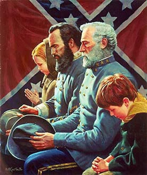 Both books present glowing profiles of Christian generals in the Confederate army; Land I Love has its page on Robert E. Lee, which seems to build its case that he was "a man of prayer" and a "Great Christian General" on the fairly conventional closing of a letter he wrote to his sister: