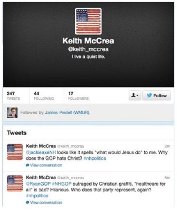 "This type of outrageous and illegal political activism should be condemned by the New Hampshire Democrat Party. They need to send a clear message to liberal activists that their shameful tactics have no place in politics."