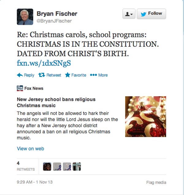 Bryan Fischer: Founders Wrote Christmas Into Constitution In Invisible Ink Only Bryan Fischer Can See