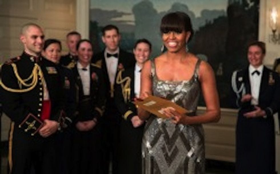Regardless of how you may feel about President Barack HUSSEIN O'Hitler O'bummer O'bama, at least we can all agree that his better half is indisputably awesome (shut up, Politico, she is TOO a feminist ), and even though she is, like,totallyold today, she is still super-fine. So let's celebrate her 50th birthday by getting off our fat asses and gulping some vegetables and eating some water (just kidding, we are not doing that and neither are you) and enjoying some pictures of her looking all mighty fine, as she does. (That one we are doing.) (How you choose to enjoy these pictures in the privacy of your own dark basement, with one hand on the keyboard, is your own business. We won't judge. We totally get it.)