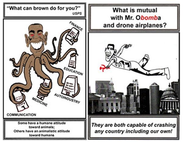 We're pretty sure you can find all 5000 of those hilarious political jokes on his website, along with a whole bunch of other cartoons. You may even be able to make sense of a few of them. He even noticed that Barack Obama is both a brown fella and a cartoon image of Japan in WWII: