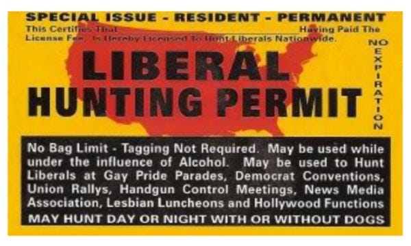 Peggy, dearest... we hate to break it to you, but there are 23 states with Republican-controlled legislatures and Republican governors, and any number of those governors and legislators got elected by running ads promising to protect the good people of their states from "extreme liberals." Hell, that fake quote you made up for Boo Burnham? That's pretty much engraved in gold leaf on the Idaho Capitol building. We also haven't seen any pickup trucks in blue states displaying anything parallel to this sticker: