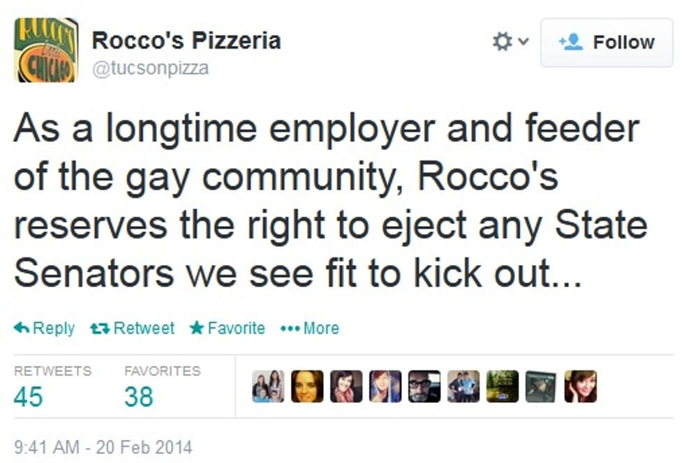 Tucson Pizzeria To Sponsors Of Arizona's Gay Discrimination Bill: No Pie For You!
