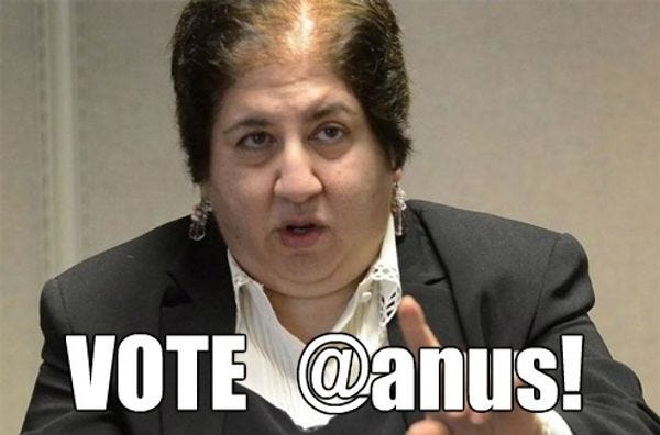 In addition, because why stop when you're on a roll, Atanus told Windy City Times that she doesn't believe in separation of church and state, adding, "I believe that maybe there should be an amendment to get that out of the Constitution because God will never go away." So that may be another of the reasons that the Chicago Republican Party was so big on saying that they had never "supported, endorsed, or assisted her in any way at any time."