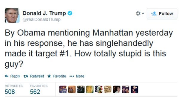 Still, Trump is shocked that Barack Obama would give terrorists the idea of nuking Manhattan, which proves that the President is utterly unfit for office: