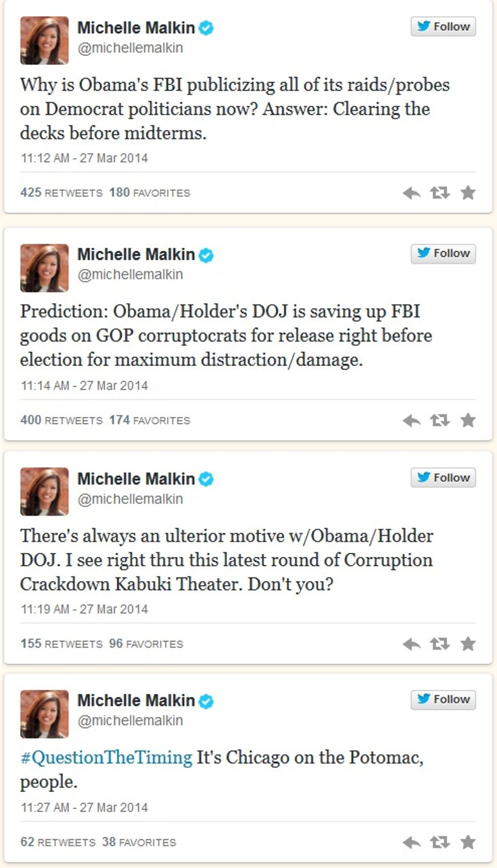 Michelle Malkin Sees Through Eric Holder's Partisan Scheme To Harm Republicans By Arresting Dems