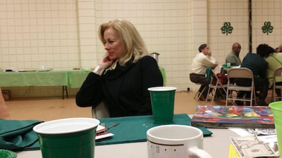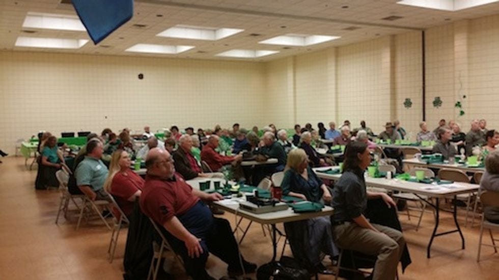 For weeks my mother was absolutely convinced no one would come to the Dems’ big fundraiser for the year, the St. Patrick’s Day commiethon (not really a commiethon). It was raining pretty hard, and the power was out in parts of Tecumseh, or maybe Shawnee. “Don’t worry mama,” I chirped at her annoyingly. “Now they’ll definitely come, because they can’t watch TV!” They had. Every seat was taken – 120 of them -- and every plate crusted with the sauce from piles of delicious beef stew prepared by a local woman who raised her own cattle. The lady had donated a few ribeyes for the silent auction as well. My mother was looking at a full house, and piles of money for the Democratic Club it would take us the whole next morning to count. The Pottawatomie County Democrats’ St. Patrick’s Day fundraiser was a smashing success.