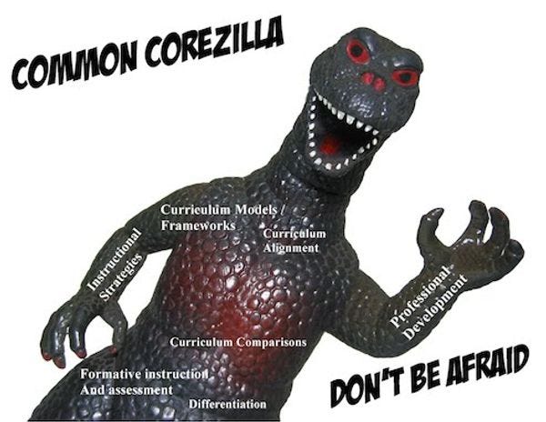 We have a beef with lots of things. Leggings worn as pants. Saying "utilize" when you really could just say "use." Rainy days and Mondays. However, if you want to dance around in the goddamn Monday rain utilizing leggings as pants, who the fuck are we to stop you? What earthly reason is there behind being so mad at a thing that will never touch your children's precious ears? (And is also, in the case of the Common Core standards, utterly benign to begin with, but let's not even go there.) Is it because you're terrified of math? (Probably.) Is it because the black Kenyan Muslin pretender supports them? (Most likely!)