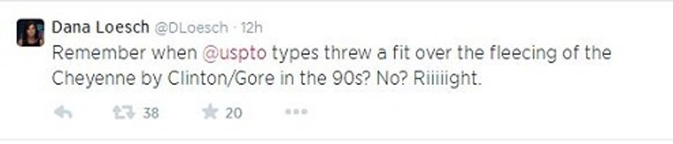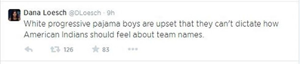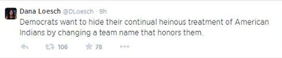We saw some hilarious reactions yesterday to the Patent Office’s decision to revoke the Washington Redskins trademark. (Note to #tcot: private citizens using the legal system to convince the Patent Office to revoke a trademark is not communism by any stretch of even the most fevered imaginations besides yours.) But by far the weirdest and most hilarious came from Wonkette favorite Dana Loesch, who nearly had a coronary ranting on Twitter about the decision. What exactly was the human-shaped puddle of monkey vomit so worked up about? Let’s ragesplore.