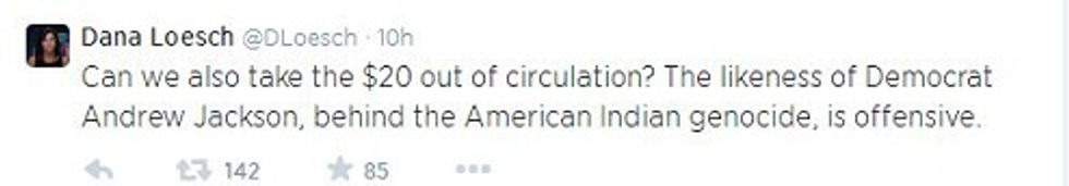 Sure! Let’s also get rid of the $1 bill (George Washington owned slaves), the $5 (Abraham Lincoln killed so many Southerners), and the $50 (Ulysses Grant, the Republican who in 1869 used an executive order to create the Cheyenne-Arapaho reservation the tribes were then herded onto in the first place). And don’t get us started on Republican Chester A. Arthur, the president who in 1883 used another executive order to carve out of that reservation the 10,000 acres that became Fort Lee, the land that the Natives were trying to reclaim in the 1990s when some shady Democrats swindled them and got Dana’s fee-fees all in a twist.