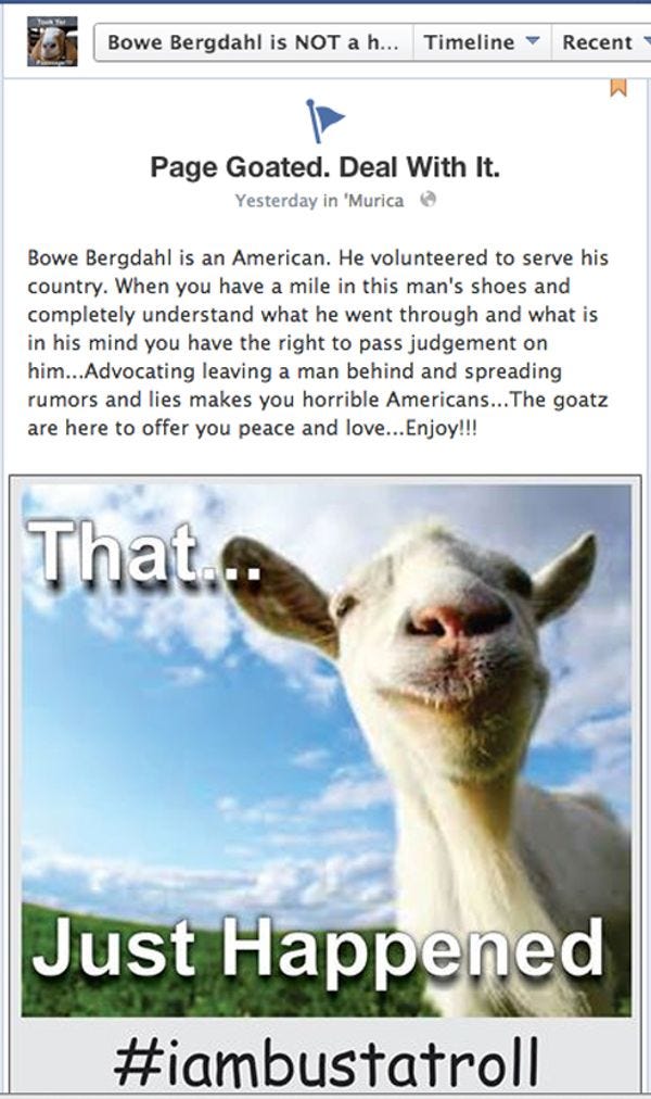 Stupid Rightwing Anti-Bowe Bergdahl Facebook Page Is Now All Full Of Goats
