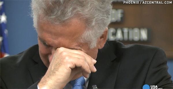 Arizona Schools Chief Apologizes, Has A Good Cry, Will Never Surrender, Won't Stop Believin'