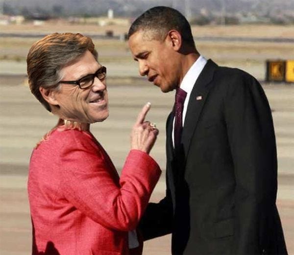 And that's why Barack Obama and Rick Perry are meeting on Wednesday, per NBC, so we guess Patrick Howley's peener and scrot can retract again inside his belly, where they belong.