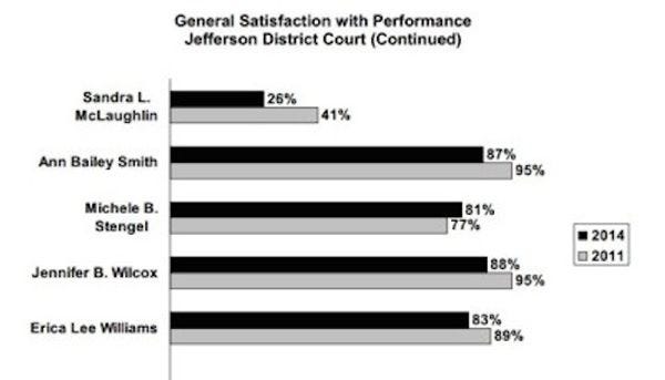 The [Louisville Bar Association] survey of 120 attorneys found just a 26 percent general satisfaction rating for McLaughlin, [...] 28 percentage points lower than the next-lowest rating in the recently released poll.