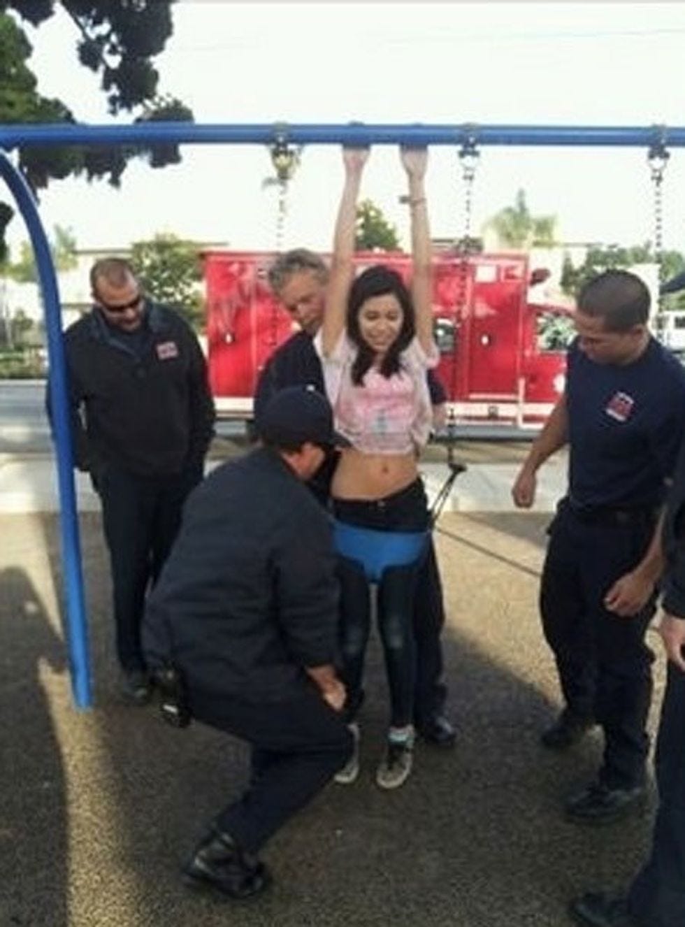 Well, that's pretty much the definition of terrible parenting, kids doing dumb stuff and getting stuck in things. As kids do -- kids are designed to get stuck in things. Not that the boy was actually in danger; if he was stuck while mom was there, he still would have been stuck, and may or may not have needed the fire rescue team to get him out. And let's just remember that adults sometimes need adult supervision at the park, apparently: