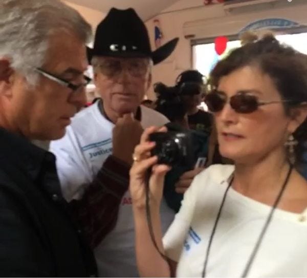 So anyway, she was told to please not come to the GOP booth at the state fair, and then this morning she showed up anyway and stood around while a couple of GOP officials got in her way: