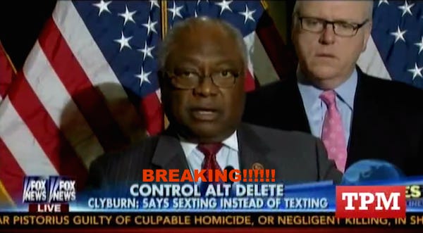 For you other olds out there who are reading this right now and do not even understand why this is HI-larious, Daily Caller has this helpful explanation: "Clyburn seemed to confuse basic “texting” with “sexting” — which involves sending sexual messages or photos."