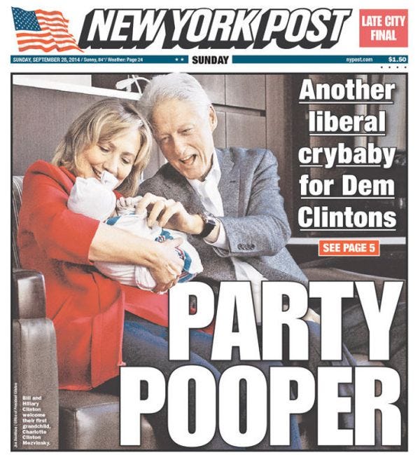 Unto the child of Billary, a child was born. And theNew York Post was ON IT, as only thePostcan be: