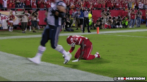 During a Monday night football game between his team and some other team, the Patriotic Patriots from Patriot Town or whatever, he committed a heinous no-no on the field. You may want to hide the children, because this video is SHOCKING.
