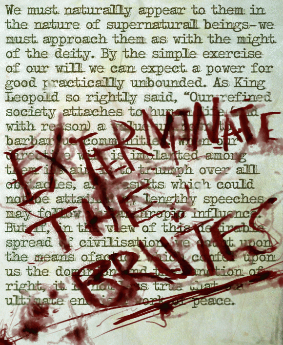What was it that the nice Mr. Kurtz wrote on the last page of his pamphlet on how to achieve the moral improvement of the African people?