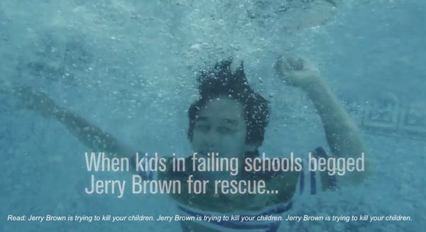 This ad is so very nuanced that we're not entirely sure what the message is, but wethinkKashkari is subtly suggesting JERRY BROWN IS DROWNING YOUR CHILDREN AND ONLY NEEL WILL RESCUE THEM BEFORE THEY DIE!!!!!!!!
