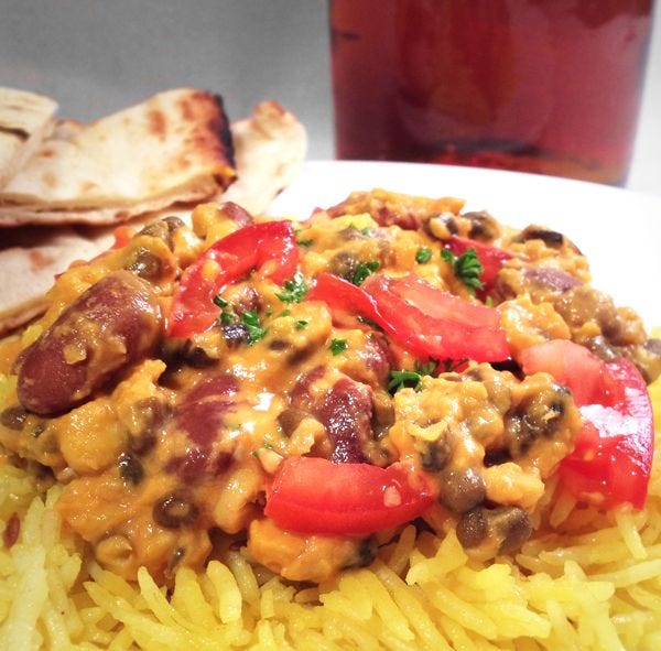 Such a crazy, busy week, and a perfect time for Teen Taal dal (Three Note Dal) -- black lentils with kidney beans and chickpeas, stewing all day in a slow cooker. Man am I going to fill you up on some dal. Toot toot! Let’s slow-cook it Indian style, and use ALL of the ingredients.