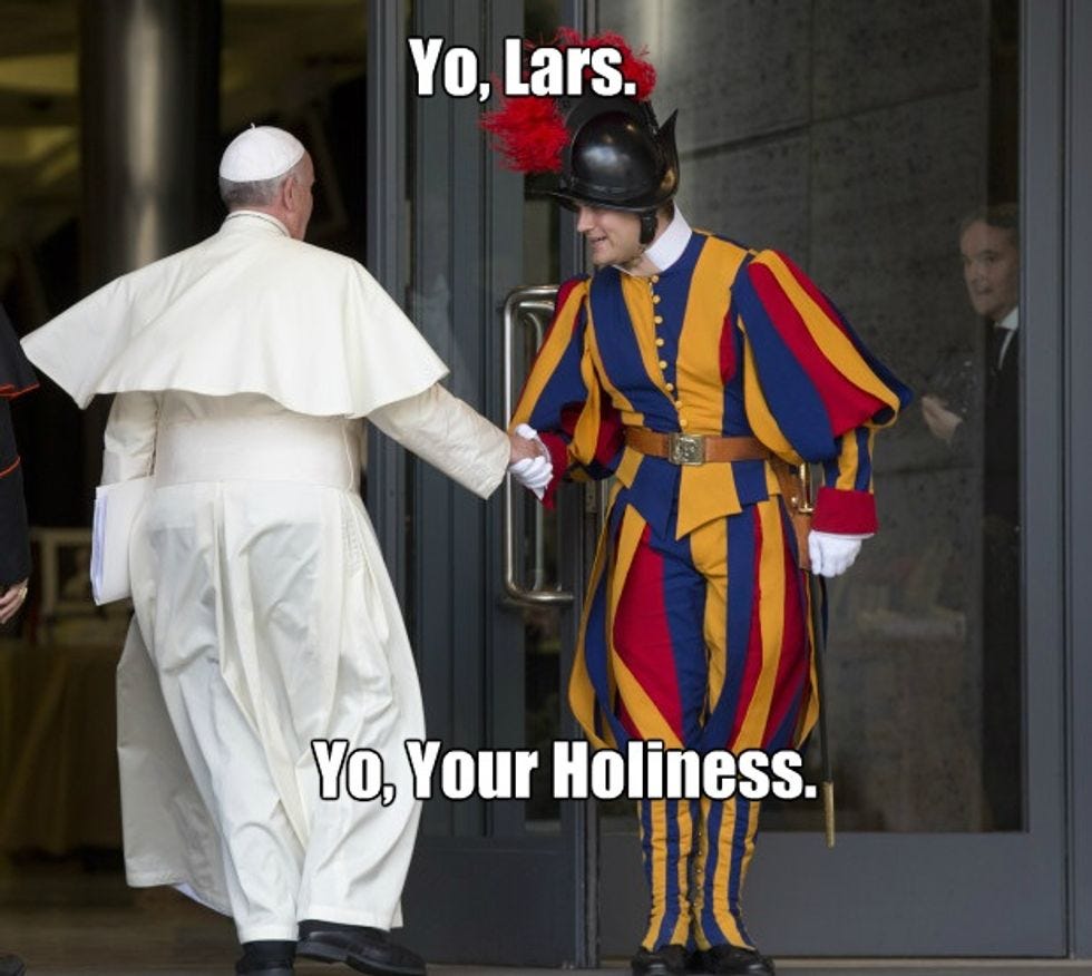Pope Francis is reportedly planning to replace Col. Anrig with "his deputy, Christoph Graf, who is said to have a more paternalistic style of command." We aren't entirely sure what that means, exactly, but it presumably includes bringing them the occasional cuppa.