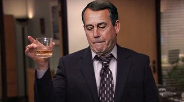 See, Congress knew Louie Gohmert, he of the dancing little dyed eyebrows, can come off a bit -- ahem -- unbalanced, while others less kind have been known to refer to him as that "stuttering little lying prick," so they went and reelected Boehner as Speaker, which is a real blow on behalf of sanity, because it's been awhile since the "adults" have been in charge. So the new Congress's first order of business on Tuesday was a vote to take a lesson from the Sam Brownback School of Accounting, whereby, all the promises of wealth pouring in to government coffers, as we lower taxes even further on the rich, then count them as actual future revenue, instead of rotting infrastructure, defunded education and auctioned-off government buildings. That way, private entities can rent them back to us forever and ever and ever, just like in Arizona. Yippee!