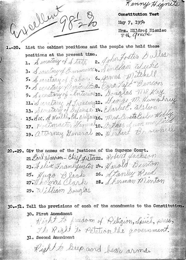 then maybe they have not really received A Education and should not be released into the world to vote all over the rest of us. We would certainly argue that a high school civics test should be much harder, by many orders of magnitude, especially if you are receiving some sweet, sweet AP credit for taking the course, but it is hard for us to argue that this test is a huge problem on its own. So, you go, Joe Foss Institute and gun range and friend of Dick Cheney and Oliver North, your patriotic impulse to test the civics of the high schoolers will not be dissed today by Wonkette, you are welcome.