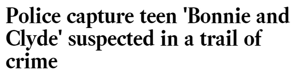 We could keep going like this, line by line, through the story, but we'll spare you. Because, in fact, the Bonnie and Clyde headlines were not the worst headlines. Try this one on for size: