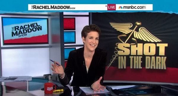 To follow up, Maddow interviewed Dr. Anthony Fauci, director of the National Institute of Allergy and Infectious Diseases, which is always a treat because she has such an obvious nerdcrush on the guy.