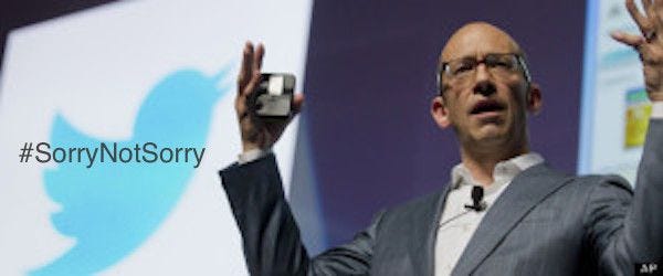 So there's no actual plan, it seems, but Dick is really sorry, you can blame him for it, and please do not leave The Twitters and hurt the company's business anymore with your "not wanting to be stalked and harassed and threatened," because he is SORRY ABOUT THAT, OK? And they're going to get right on that ... one of these days.