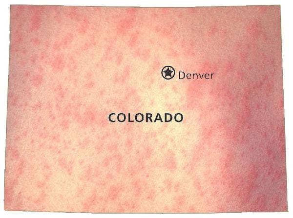 As measles is spreading all over the place, including this latest outbreak in Chicago, Colorado has a great idea to make things even worse! Oh, sure, maybe Colorado already has the nation's lowest rate of vaccinations for measles, mumps, and rubella; just 82 percent of school-aged kids have had the federally recommended two-dose vaccine that provides adequate protection. But now the state legislature is considering a proposal to strengthen parents' rights to refuse to vaccinate their kids.