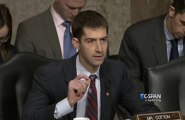 Teabagger Tom Cotton, an actual elected senator from Arkansas, proved this week that, contrary to media reports and the lies of actual terrorists, there is absolutely no way anyone in the Muslim world has ever been moved to take up arms (or suicide vests, or car bombs) against America because of the prison at Guantanamo Bay.