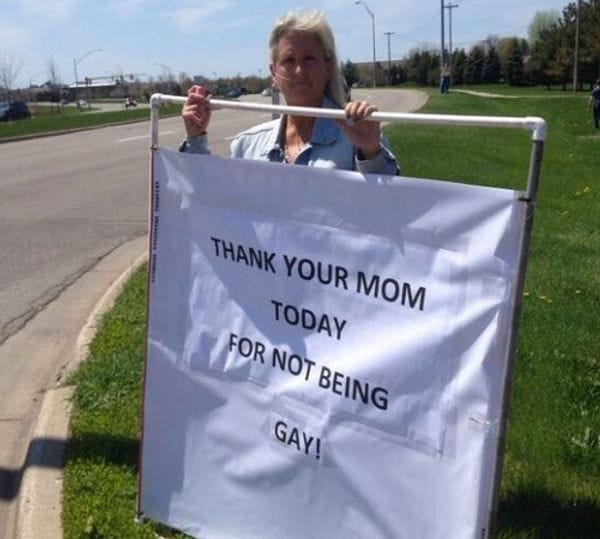 Anyway, you will be happy to know that Mrs. Weick didn’t say the most insane thing that day. No, that honor belongs to an anonymous protester who told a local news crew, “They’re trying to pretend to be good until it’s time to be evil. They’re just infiltrating the system.”