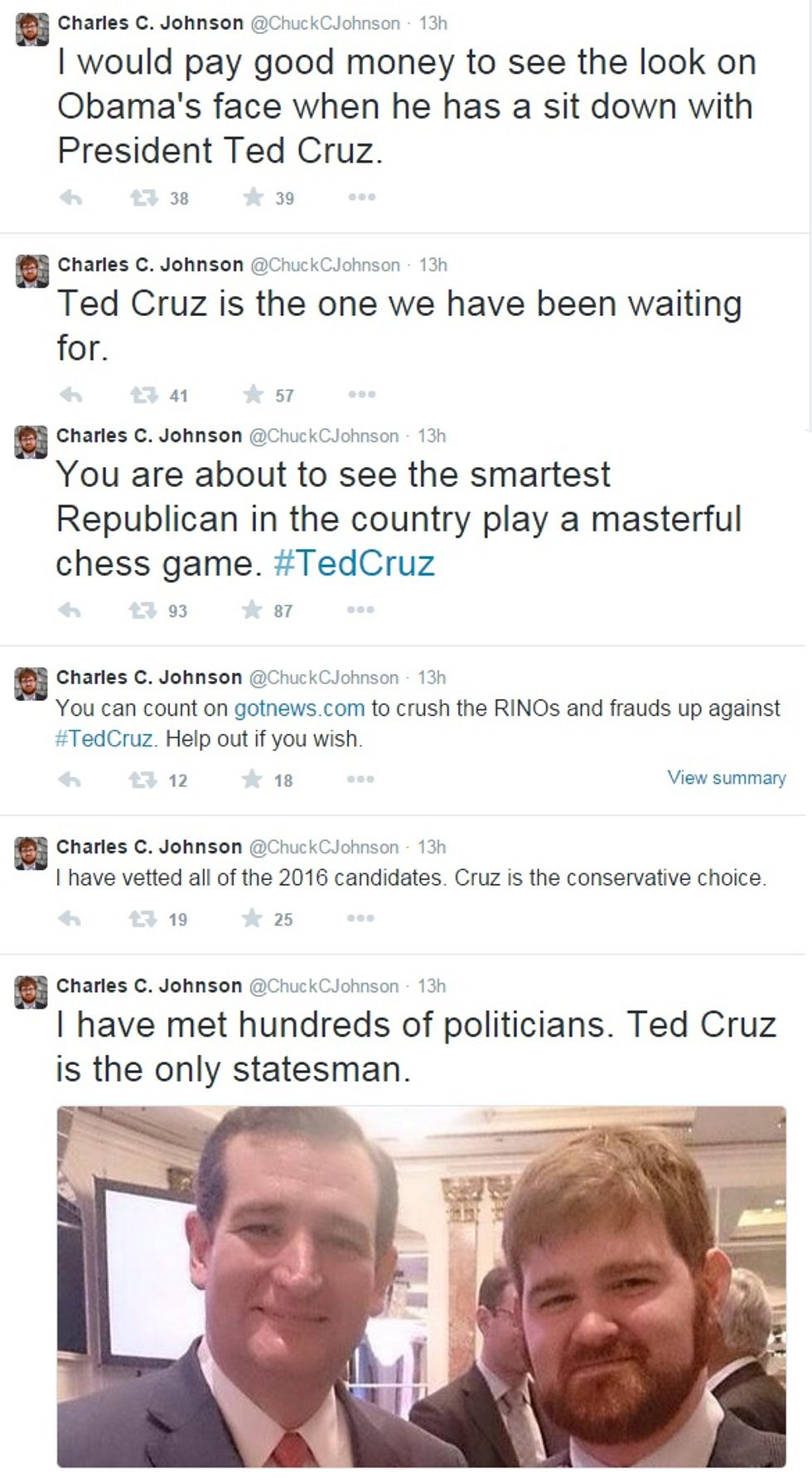 But the most enthusiastic Cruz supporter we've seen so far has to be the New Stupidest Man On The Internet, Chuck C. Johnson, who probably needs a change of underpants by now:
