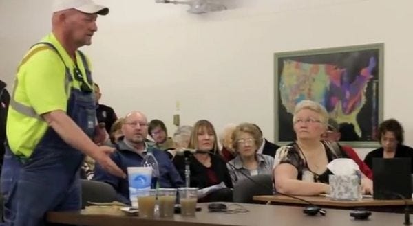 Public hearings don't generally make for exciting video, short of the occasional outburst by fans of black helicopters or people worried about buttsex enzymes, but they can also be enlivened by an activist with a good visual aid. For example, here's a Nebraska man inviting members of the state's Oil and Gas Conservation Commission to drink glasses full of a mystery chemical mix, to make the point that he's not so crazy about a proposal to pump other states' fracking wastewater into wells in Nebraska.