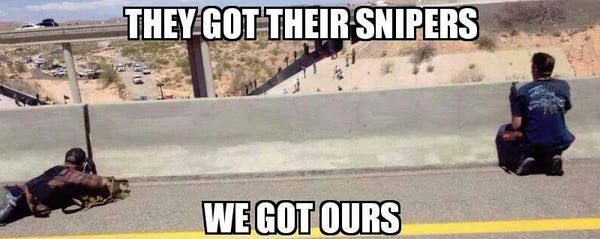 So while we won't be there to see if the various militia factions get into another fight about imminent federal drone attacks, or to hear whether Mr. Bundy has any knew knowledge about The Negro, we'll certainly keep the celebration in mind, and look forward to the great day when our grandchildren ask us just what the fuck was wrong with people in the early 21st century.