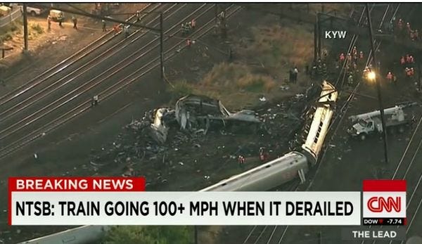See, here's the thing: we don't know why the train was going over twice the speed it should have been on that section of track. We're perfectly willing to believe that Brian Bostian was irresponsible, distracted, impaired, being flamingly gay, or maybe even texting, like the engineer of the Metrolink train whose 2008 crash spurred Congress to mandate Positive Train Control in the first place. But if a Positive Train Control system had actually been in place -- and it does cost money to upgrade trains and tracks, it just DOES -- we would not be having a political argument about the Philadelphia Amtrak crash, because no matter how irresponsible the engineer might have been, there probably would not have been a Philadelphia Amtrak crash for us to be talking about. Infrastructure matters, and continuing to let it rot is not fiscal responsibility, it's increasingly becoming negligent homicide.