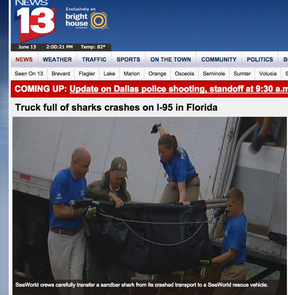 OAK HILL -- A truck carrying several sharks crashed on I-95 in Volusia County as heavy storms crossed Central Florida on Wednesday afternoon.